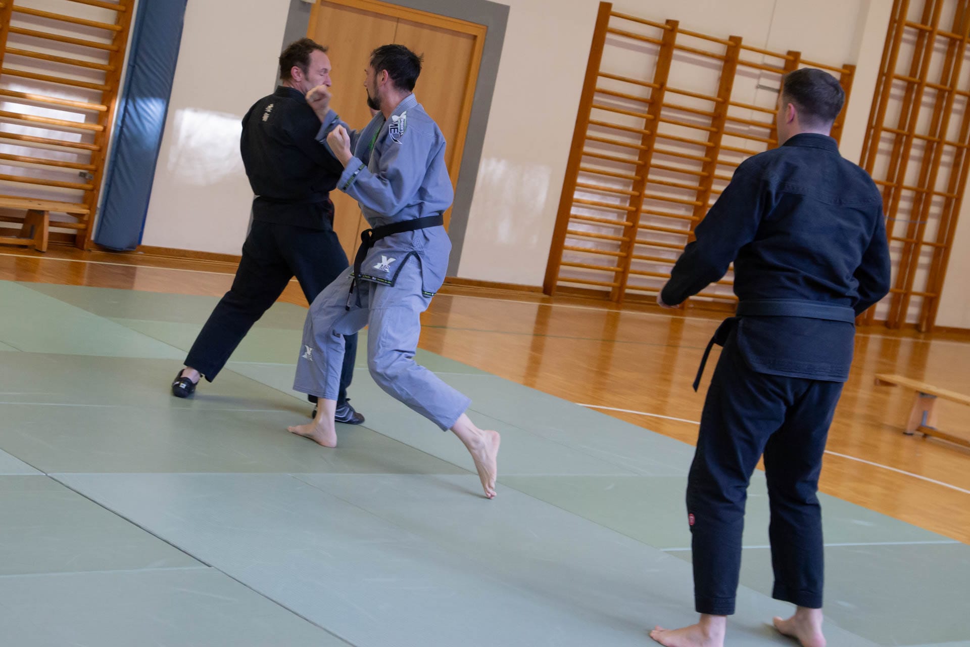 Ingo hat vor allem durch die Demonstration der Gegen- und Weiterführungstechniken eindrucksvoll bewiesen, wie man unsere Techniken wirkungsvoll und fließend kombiniert.